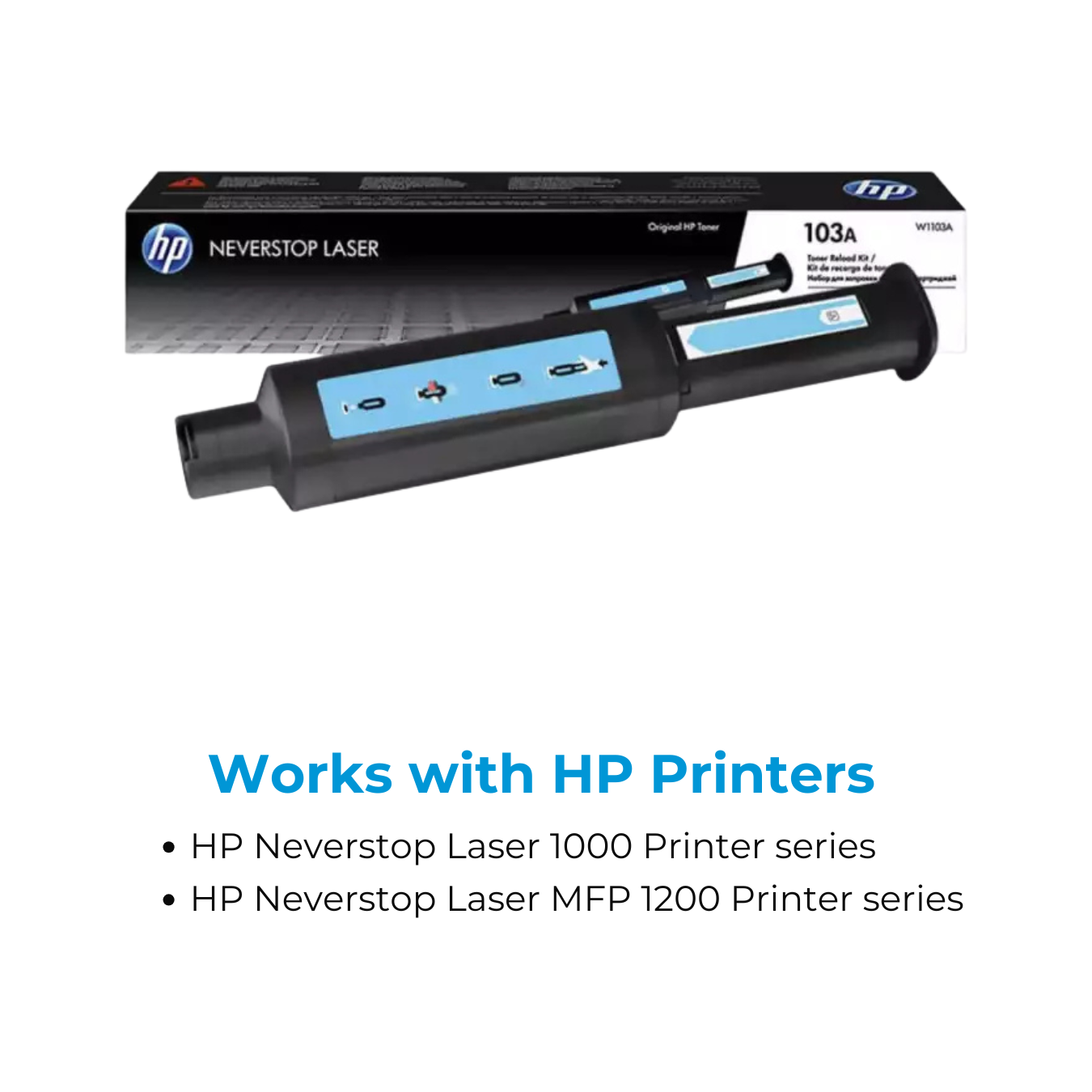 HP 103A Black Neverstop Laser Toner Reload Kit (W1103A) compatible printers