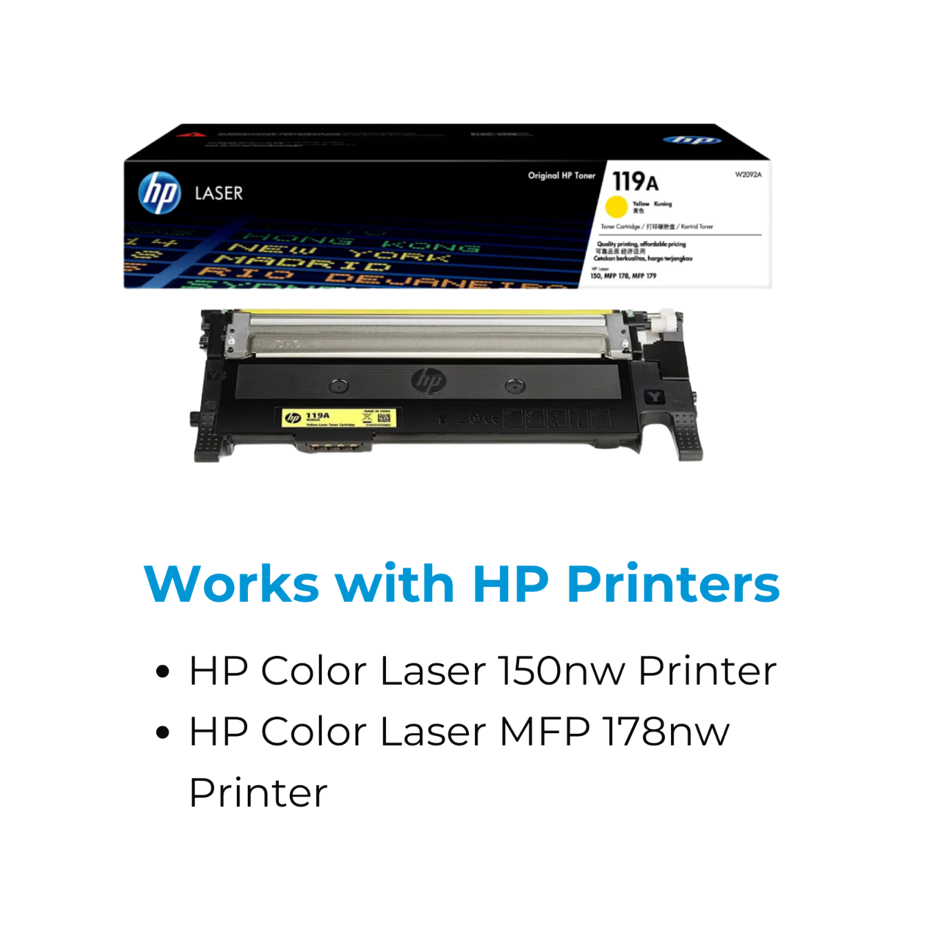 Printers which are compatible HP 119A Yellow Laser Toner Cartridge (W2092A):