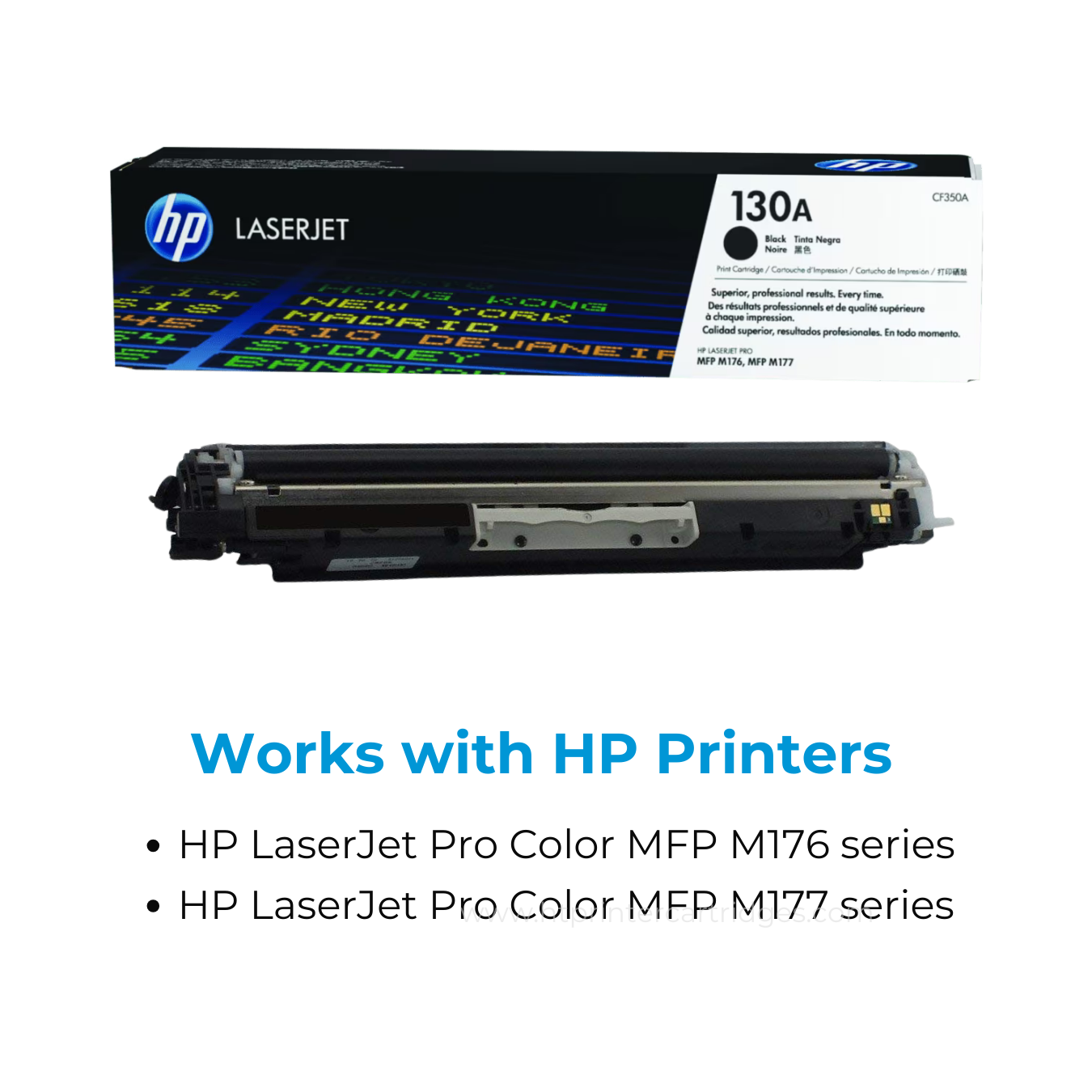 Printers which are compatible HP 130A Black Original LaserJet Toner Cartridge (CF350A):
