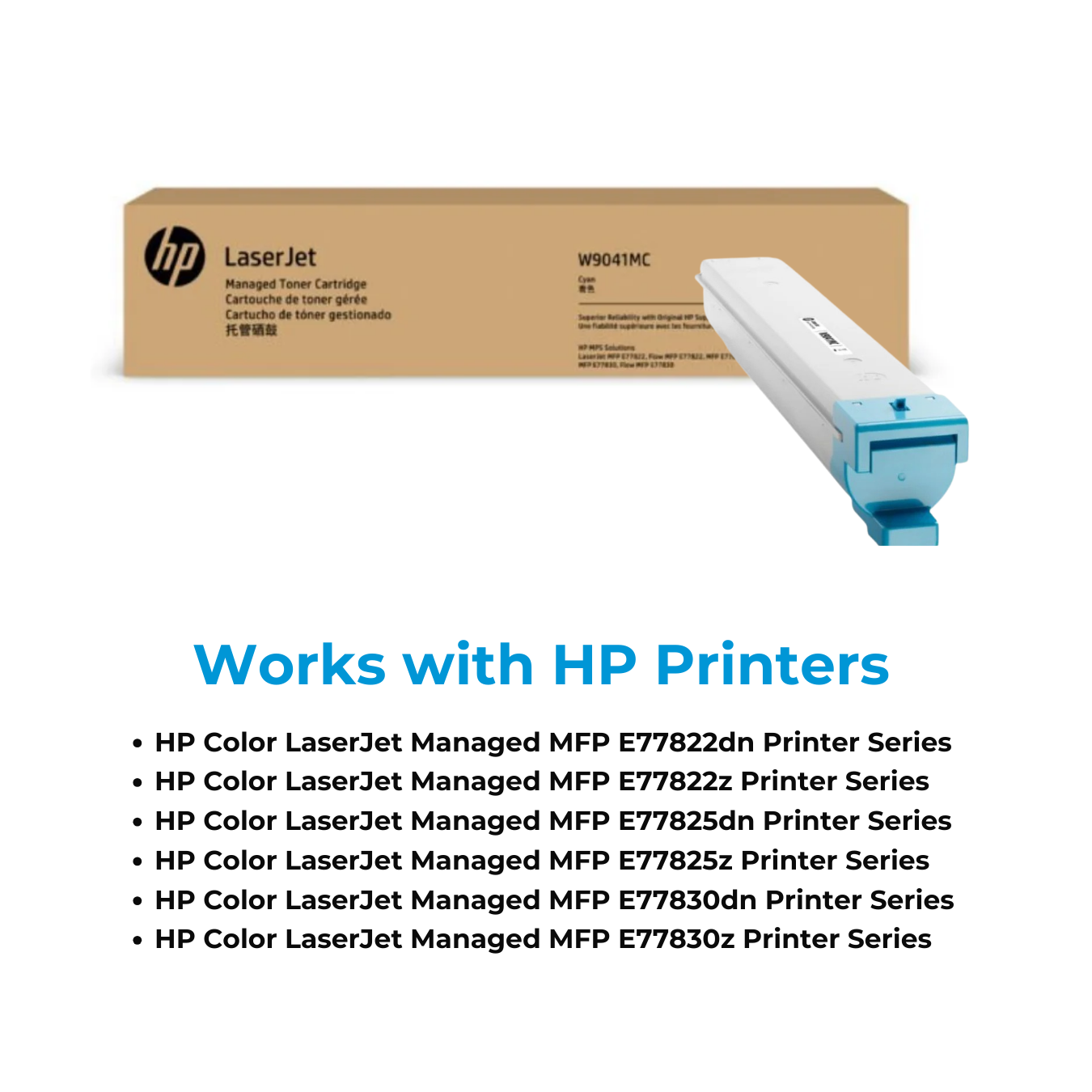 Printers which are compatible HP W9041MC Cyan Original LaserJet Toner Cartridge: