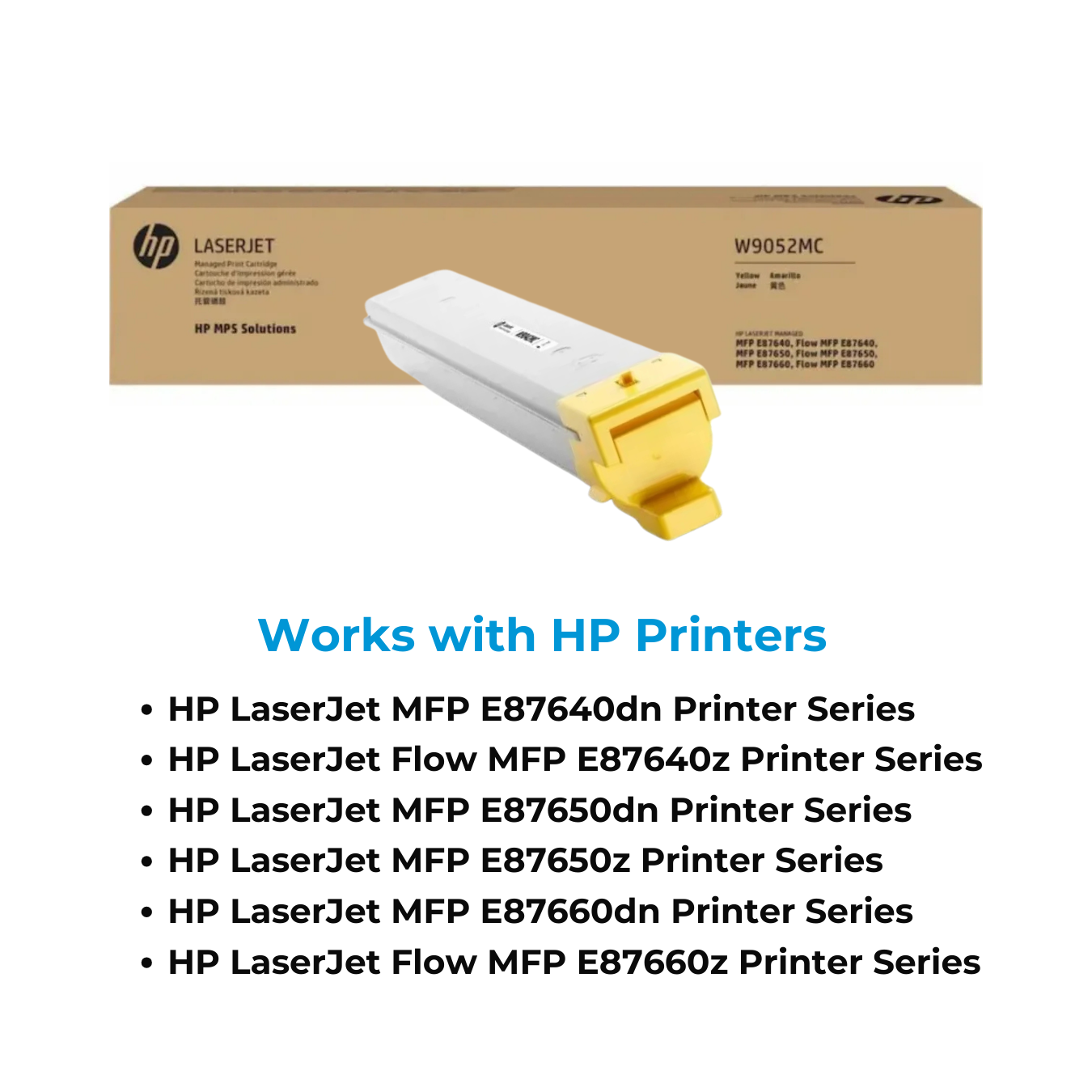 Printers which are compatible HP W9052MC Yellow Original LaserJet Toner Cartridge:
