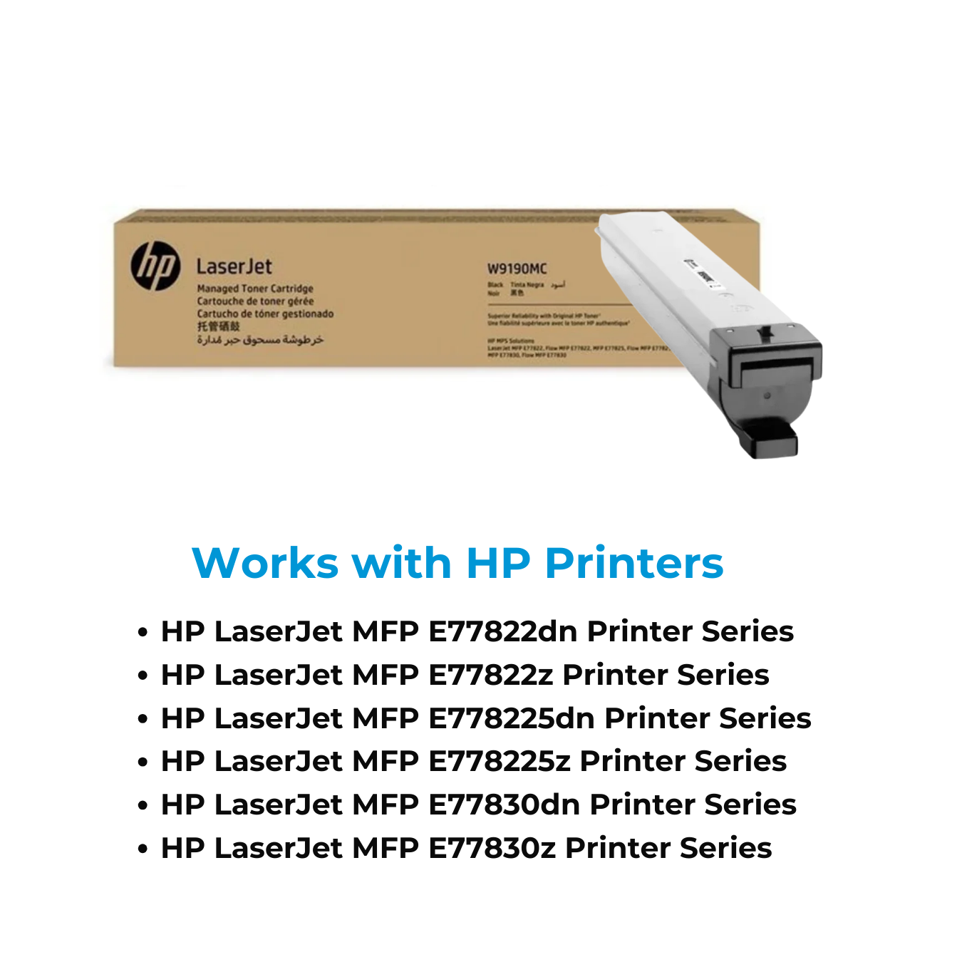 Printers which are compatible HP W9190MC Black Original LaserJet Toner Cartridge: